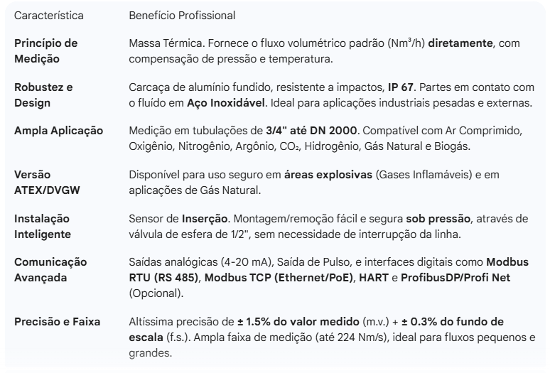 Com tecnologia de massa térmica, ele oferece dados confiáveis para otimizar processos, reduzir custos de energia e garantir a conformidade em ambientes críticos.